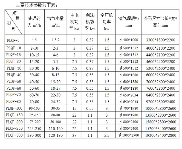 三、平流式溶氣氣浮機(jī)激素參數(shù):