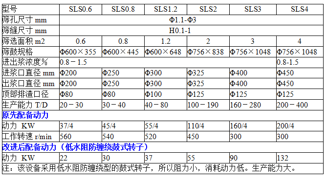 眾所周知,再生紙漿中的雜質(zhì)分輕雜質(zhì)、重雜質(zhì)兩部分。傳統(tǒng)型壓力篩由上部進(jìn)料,底部排渣,輕重雜質(zhì)都通過整個(gè)篩漿區(qū)。由于回收的廢紙箱漿料中會(huì)含有很多鐵釘、錠箱釘、砂石等硬質(zhì)雜質(zhì),當(dāng)這部分雜質(zhì)通過篩選區(qū)時(shí)勢(shì)必會(huì)給篩鼓及旋翼造成嚴(yán)重的磨損與破壞。嚴(yán)重的會(huì)擊破篩鼓。SLS型升流壓力篩采取底部進(jìn)漿、底部排重渣、頂部排輕渣的升流式結(jié)構(gòu)設(shè)計(jì),有效地解決了上述問題。重雜質(zhì)一進(jìn)入機(jī)體即被甩到底部沉渣槽,由重渣排渣管間歇或者連續(xù)排出機(jī)外,輕雜質(zhì)在壓力作用下升到頂部排渣口排出。這樣,一方面有效地縮短了雜質(zhì)在篩區(qū)的停留時(shí)間,降低了雜質(zhì)循環(huán)的可能性,提高了篩選效率;另一方面防止重雜質(zhì)對(duì)轉(zhuǎn)子和篩鼓造成的損壞,延長(zhǎng)設(shè)備的使用壽命。